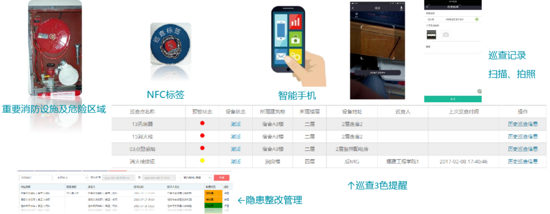 智慧消防物聯網綜合平臺系統采用B/S架構,可在任意地點,使用PC機用瀏覽器打開管理界面進行登錄操作。利用物聯網技術,采用專用網絡、寬帶網絡、GPRS及3G/4G移動數據網絡等多種聯網方式,將各個用戶的火災報警系統、消防聯動控制系統、消防水系統、電氣火災系統、消防視頻監(jiān)控系統、消防生命通道(防火門、防火通道)監(jiān)控、重點部位及危險區(qū)域消防監(jiān)控、消防巡查管理等建筑消防系統連成網絡,從而實現對用戶消防設施的全面、遠程、集中監(jiān)控管理,確保聯網用戶的消防安全。實時采集聯網單位火災自動報警系統前端感知設備的告警信息和運行狀態(tài)信息,并與其他系統的感知設備,如安防監(jiān)控系統的視頻信息建立關聯,利用數據、視頻等多種信息感知手段實現對聯網單位建筑物消防安全狀況的全方位感知、全過程監(jiān)控;提前發(fā)現前端消防設施存在的各種故障隱患,督促相關部門整改,降低火災風險。電氣火災監(jiān)測預警系統綜合實現各單位總用電回路的剩余電流、線纜接點溫度、電壓、電流、能耗統計等數據的實時采集與上傳,通過PC端、手機APP等監(jiān)控終端可以實時掌控用電安全情況,真正實現電氣火災故障隱患前期預警的一體化實時監(jiān)測。所有數據經云平臺綜合診斷分析,及時發(fā)現用戶的用電線路是否存在漏電、過載、短路、過壓、接觸不良及溫升異常等故障隱患,全面掌握用電回路狀態(tài)及運行趨勢,有效避免電氣火災事故的發(fā)生,為用戶實現電氣火災的智慧化監(jiān)控管理,提供整體解決方案及全新服務模式。消防水源信息監(jiān)控系統能夠實現對消防水源管網水壓以及消防水池水位的準確、實時多點并發(fā)監(jiān)測,通過對水壓值、水位值及水溫的動態(tài)分析,保證消防水箱和消防水池的水位處于正常范圍內,確保消防管網系統通暢。當水壓、水位或管網系統發(fā)生異常時能夠迅速發(fā)出報警信息,并通知相關人員及時排查消防水源隱患。采用物聯網、云計算、大數據等高新技術;對安全重點部位及重要設施建立身份標識;可安裝NFC、藍牙巡檢標簽,手機具體NFC或藍牙功能,即可實現到現場巡查,避免作弊;可通過將巡查點信息關聯標簽,并設置巡查周期,實現巡查點管理;手機掃描標簽并進行例行防火、防患巡查工作;實現戶籍化、標準化、痕跡化管理;為可視化數據分析、考核、通報、整改等提供理論依據。系統實現消防重點部位可視化監(jiān)管,利用單位自身監(jiān)控設施,加裝聯動塊。通過視頻監(jiān)控系統可實現消防重點部位可視化監(jiān)管,一旦部件有報警,可以調取相關攝像頭視頻信息,查看周邊環(huán)境問題,及時確認,實現精確高效預警,讓消防預警確認可視化,更加真實反饋重點區(qū)域的火災預警情況。同時對于非本地的監(jiān)管部門與受理中心來說。也可以通過視頻的方式遠程確認,大大增加了消防防火系統的可靠性。物聯網大數據平臺、應急管理信息化、安全生產監(jiān)管系統